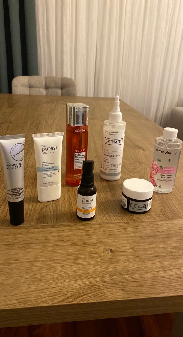 Günlük cilt bakım rutinleri için krem, serum ve tonik içeren çeşitli kadın cilt bakım ürünleri seti. Hepsi 2-3 kez kullanıldı mağazadan alındı