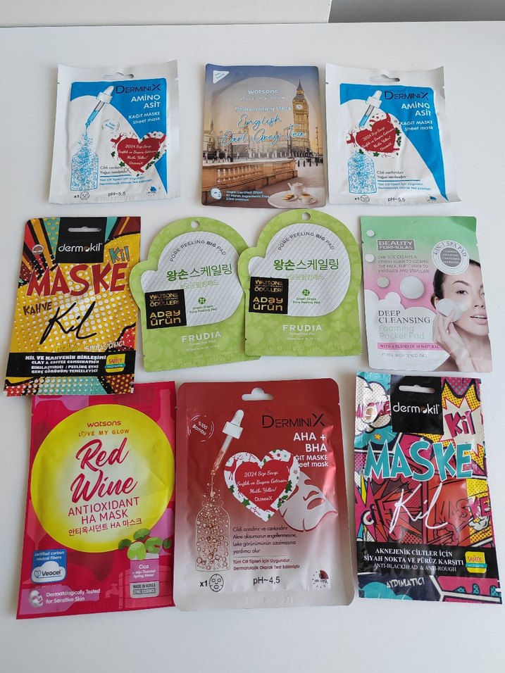 10 adet isteyene istediği adet satılabilir. Kadınlar için antioksidan, amino asit, AHA ve BHA içeren çeşitli maske ve peeling seti, derinlemesine temizlik sağlar..