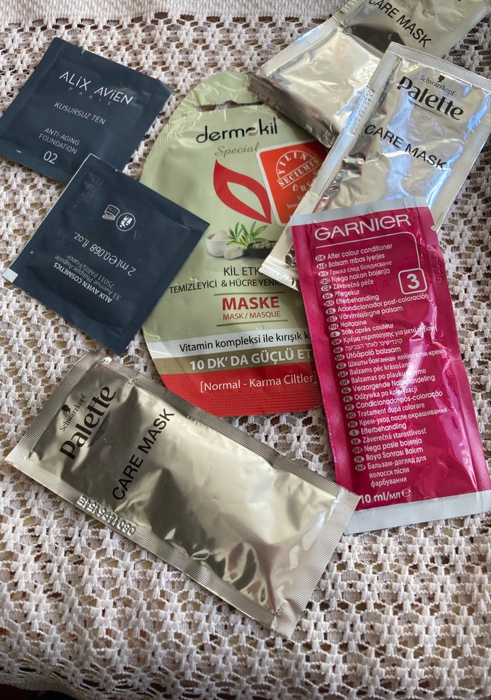 Normal-karma ciltler için vitamin kompleksi içeren, temizleyici ve besleyici özellikli çeşitli yüz maskeleri seti.