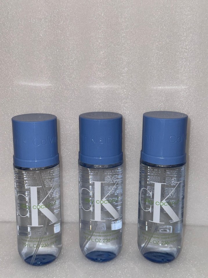 Kadınlar için CK One parfüm spreyi, 230 ml şişelerde, mavi kapaklı, ferah bir koku sunar.
