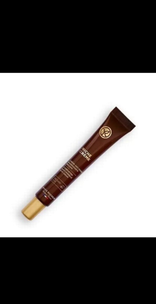Kadınlar için göz çevresi kremi, kahverengi tüpte ve altın kapaklıdır. Hassas cildi besleyip yaşlanma belirtilerini azaltmaya yardımcı olur.