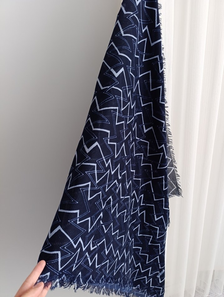 Lacivert renkte, bohem tarzda ve minimalist geometrik desenlere sahip kadınlar için drapeli şal. Yumuşak tekstil kumaştan üretilmiştir. sayılı kullandım ter temiz. dört mevsim kullanılabilir iç göstermiyor