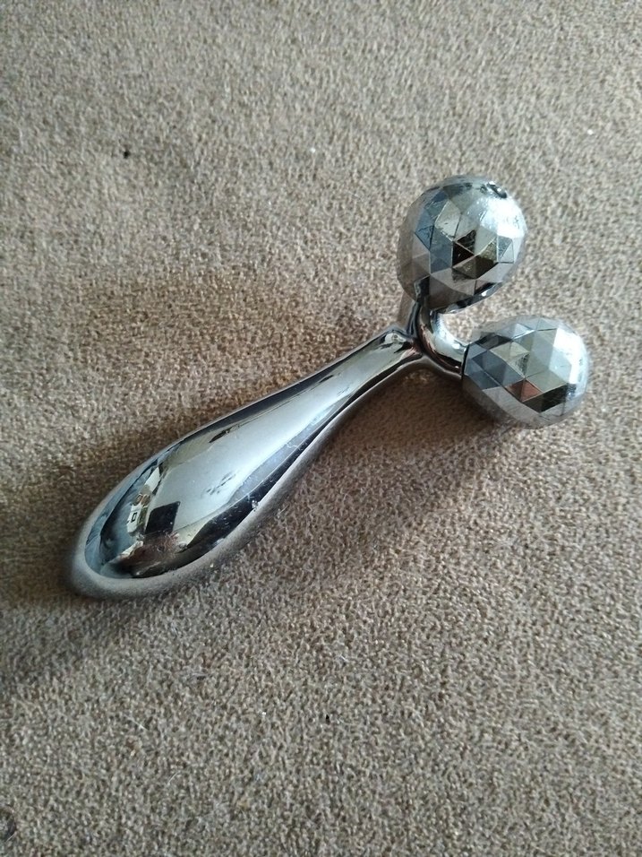 Kadınlar için iki fasetli topu olan, cilt tonunu ve rahatlamayı artırmak için kullanılan masaj ve cilt bakım aleti. ✨