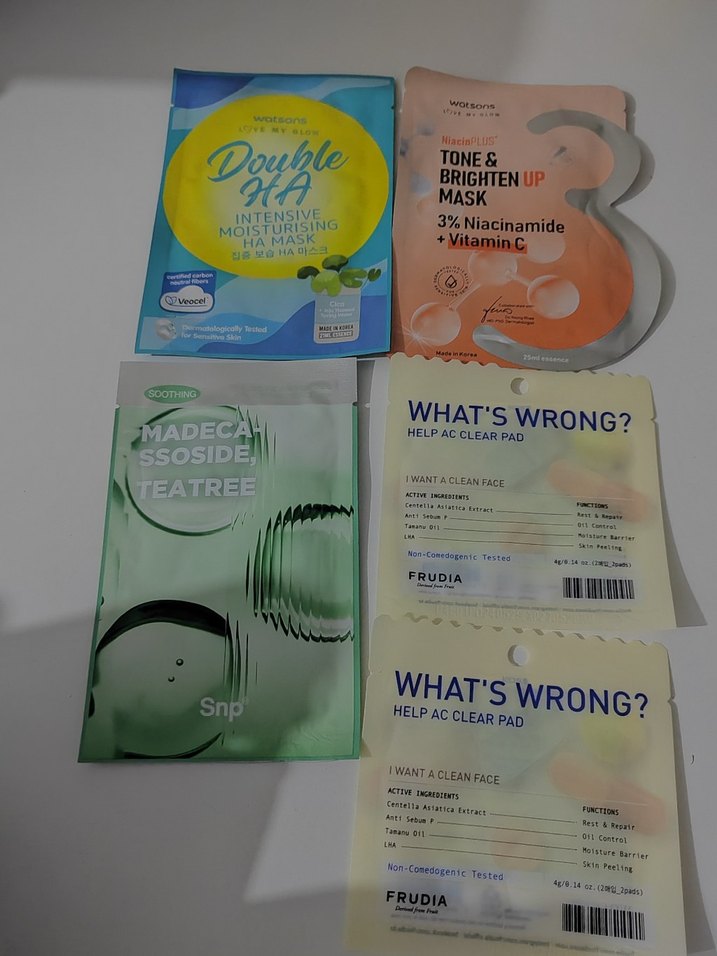 Bu set, %3 niasinamid, C vitamini ve çay ağacı içeren nemlendirici ve aydınlatıcı yüz maskeleri ile temizleyici ve yatıştırıcı pedler içerir..