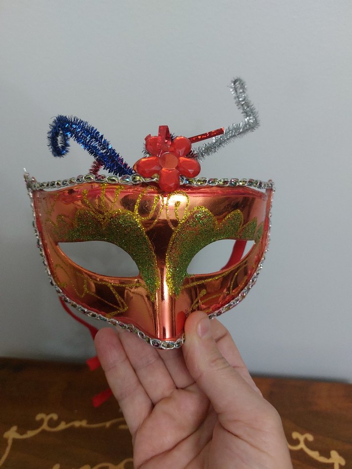 Kadınlar için sim detaylı, renkli karnaval maskesi. Üst kısmında dekoratif pipet temizleyiciler bulunur.