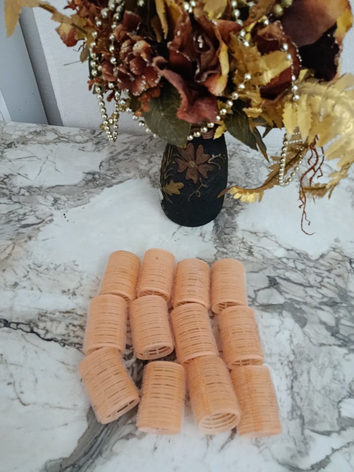 Kadın saçları için yumuşak, şeftali renkli saç bigudisi seti, rahat saç şekillendirme sağlar.