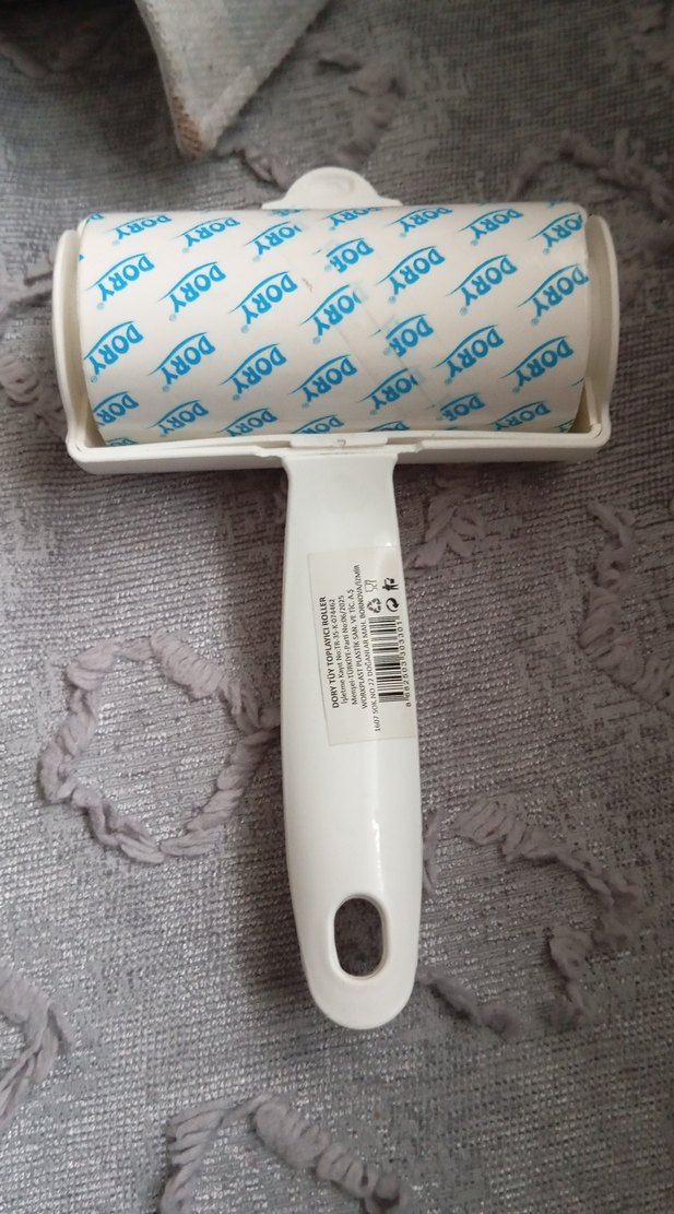 Kadınlar için beyaz saplı, çok katmanlı yapışkan tüy toplayıcı rulo. Hafif ve kullanımı kolaydır.