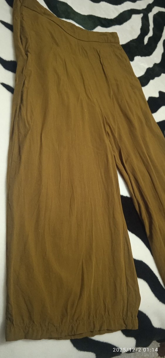 Kadın haki yesil renginde pantolon, salaş kesim ve drapeli tasarımla rahat ve minimalist bir stil sunar. bel 42 cm boy 82 cm