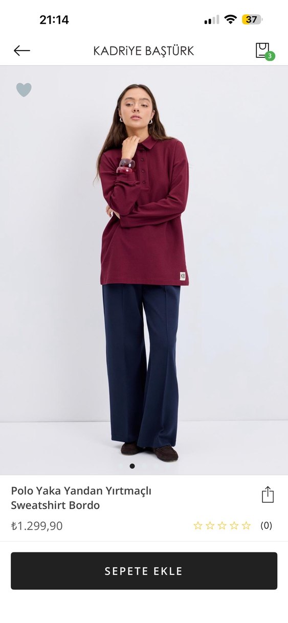 Polo yakalı, yandan yırtmaçlı bordo sweatshirt. Bol kesim ve yumuşak kumaşıyla rahat, gündelik kullanım için uygundur. #kadriyebaştürk #kadriye Baştürk