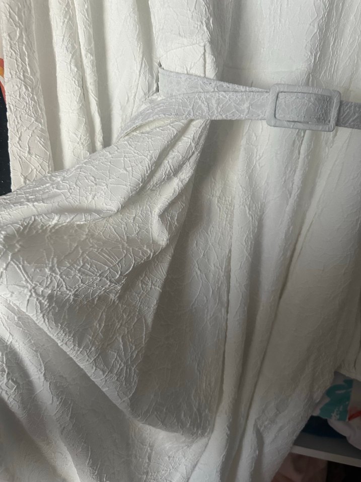 Hiç giyilmedi beyaz konsept parti için almıştım giyemedim.balon kol,şık ve spor olarak kullanılabilir.1 bedendir 36-38-40 beden uyumlu astarsızdır etek astarıyla giyilebilir.boynunda denemeden kaynaklı fondöten lekesi vardır yıkamada çıkar. Fiyata yansıtılmıştır