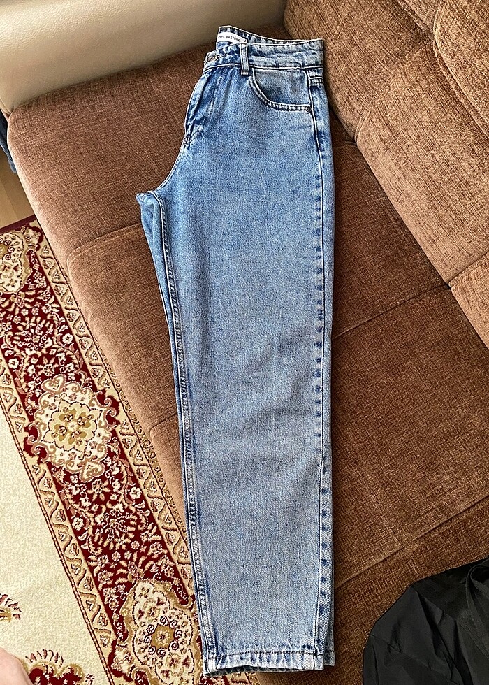 Kadriye Baştürk markalı mom jean. Ürün çok kullanılmadı ama kullanıma bağlı ağ kısmında hafif aşınmalar var fotoğraflara ekledim.