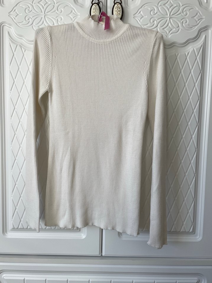 Krem renkte, uzun kollu, boğazlı ve fit kesim kadın triko kazak. Yumuşak örgü kumaştan, normal midi boyda ve desensiz sade tasarıma sahip. Günlük kullanım için uygun.
