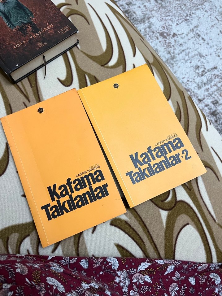 Sarı kapaklı, önünde "Kafama Takılanlar" ve "Kafama Takılanlar 2" yazan iki kitap seti.