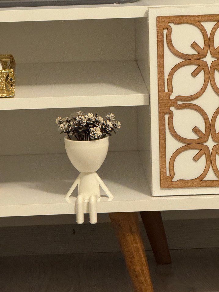 Kafası çiçek saksısı şeklinde tasarlanmış, küçük çiçeklerle dolu figürin. Raf kenarına oturabilir, dekoratif bir hava katar. 2 adet