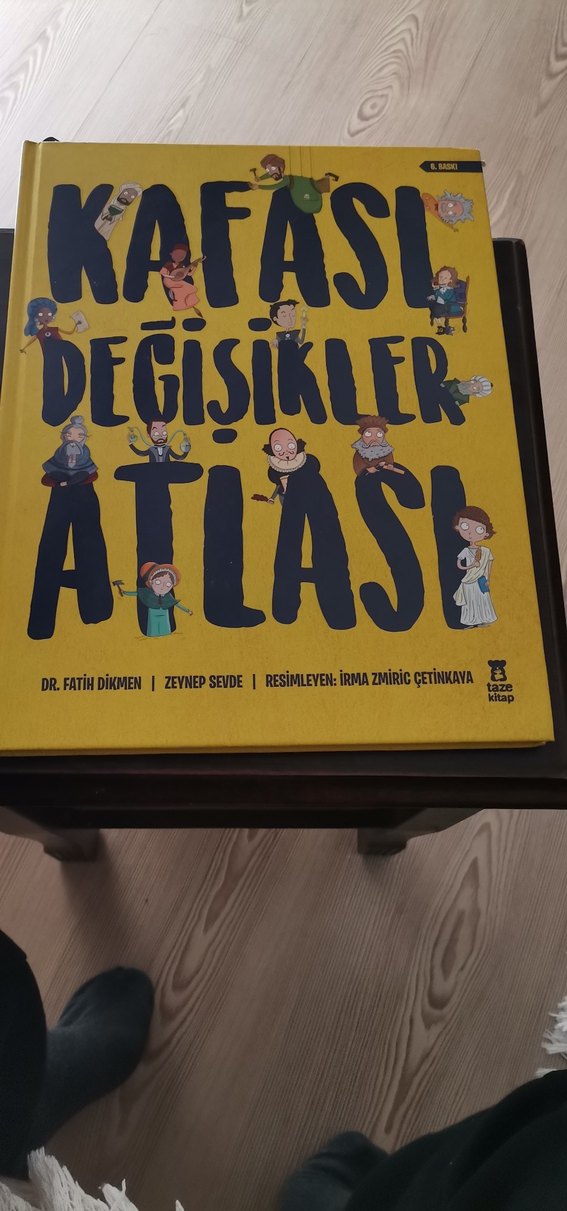 Dr. Fatih Dikmen ve Zeynep Sevde'nin yazdığı, İrma İzmirci Çetinkaya'nın çizdiği Kafası Değişikler Atlası adlı sanat kitabı.