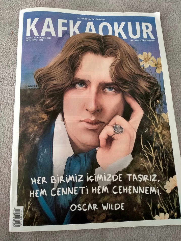 Kafka Okur dergisi, Oscar Wilde kapak görseli ve "Her birimiz içimizde taşırız, hem cenneti hem cehennemi" alıntısı ile hazırlandı.