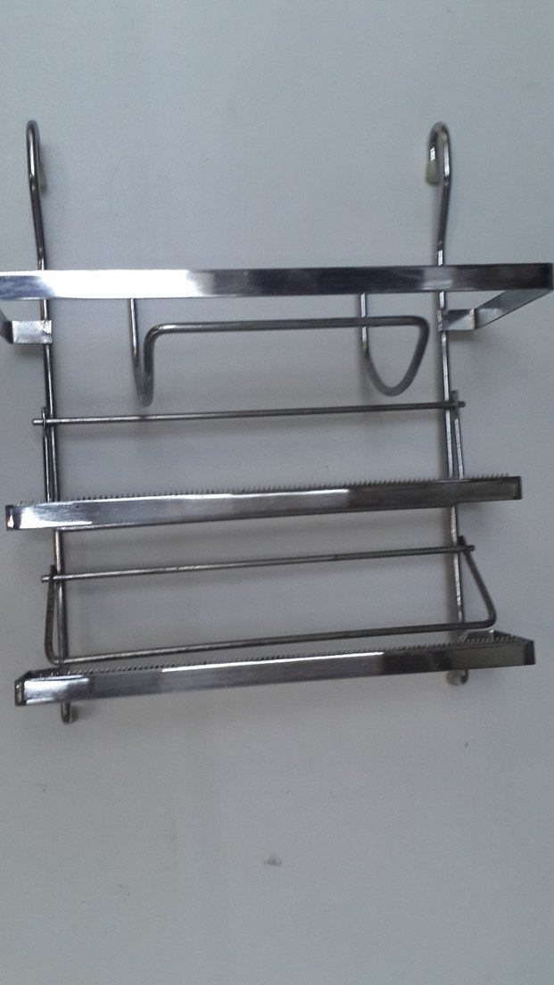 Gri metal mutfak rafı, mutfak eşyalarını düzenlemek için çok katlı ve dayanıklı tasarıma sahiptir. Alan tasarrufu sağlar.