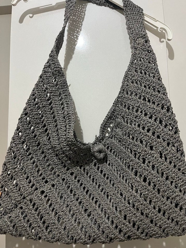 Gri renkli, örgü dokulu, bohem tarzda kadın çantasıdır. Günlük kullanıma uygun, sade ve rahat omuz askılıdır.