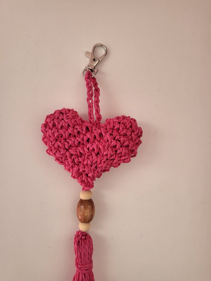 kağıt ipten çanta aksesuarı charmı kalp figürlü eni 8 cm boyu 27 cmdir