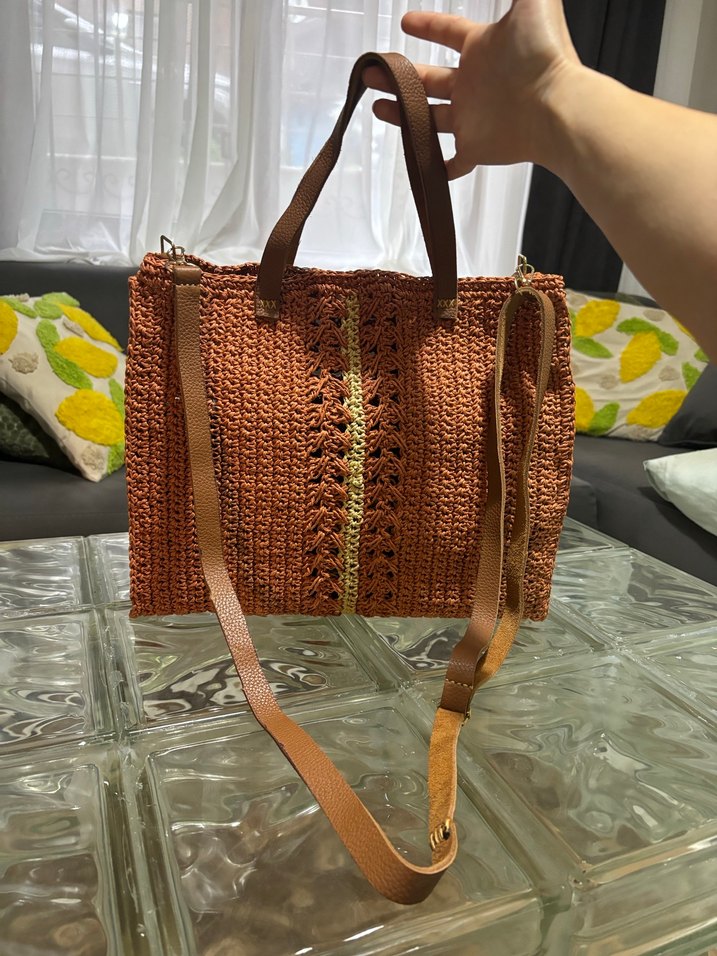 Kağıt İpten Kiremit Rengi Örgü Kadın Çanta