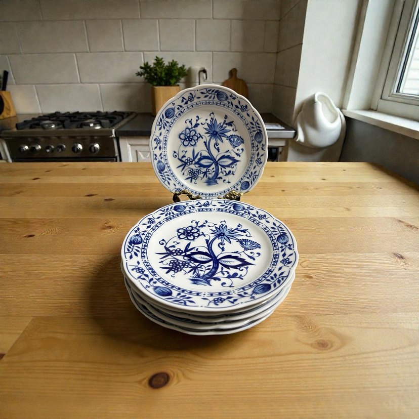 Kahla damga soğan desen Koyu Mavi Nakış Desenli Tabak Seti