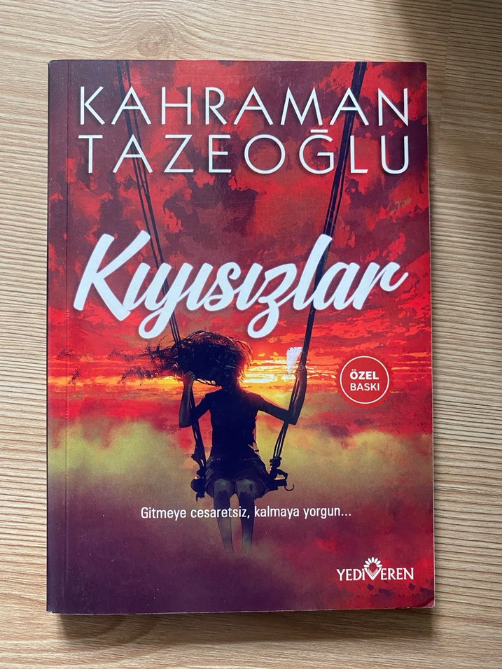 Kahraman Tazeoğlu'nun Kıyısızlar adlı romanının Yediveren tarafından özel baskısı. Cesaret ve yorgunluk temalarını işliyor.