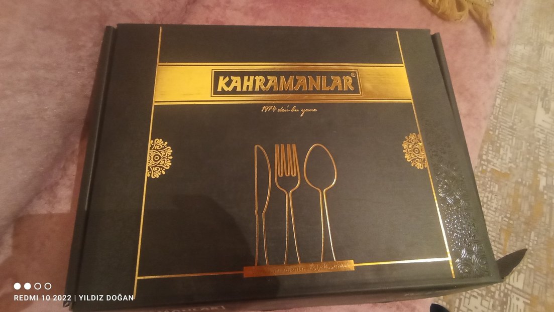 Beyaz renkte, koyu renk saplı çatal, kaşık ve bıçaktan oluşan set. Kullanma kılavuzu ve garanti belgesi ile birlikte gelir. kullanılmadı herhangi bir defo çizik sorun yoktur
