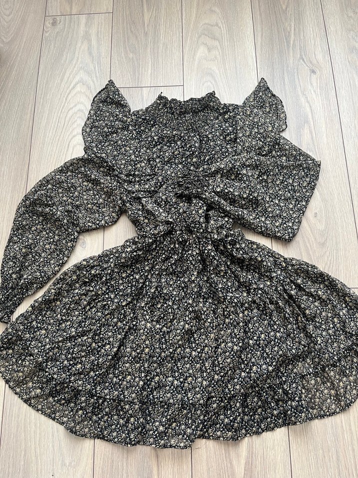 Ürün s-m beden uyumlu az giyildi çok şık beli lastikli uzun kollu desenli elbise mini