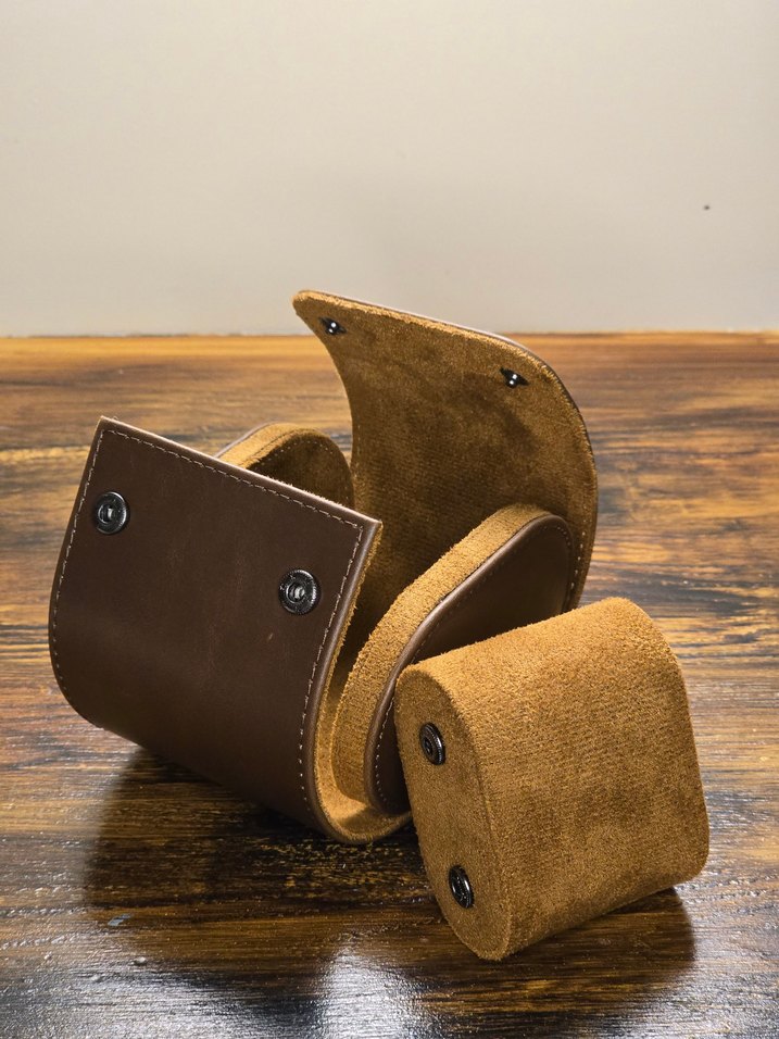 Watchroll Kahve Deri Tekli Seyaht Saat ve Takı Çantası / Çıtçıtlı Kapak / Süet İç Astar / Çok Şık ve Kullanışlı