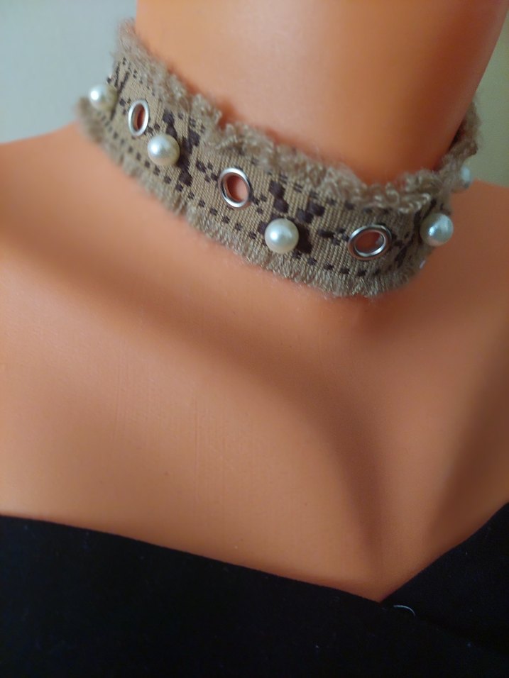 Bej renkte, desenli ve boncuk detaylı kısa kadın kolyesi ve bileklik set Bohem tarzını yansıtan, günlük kullanıma uygun bir aksesuardır.
