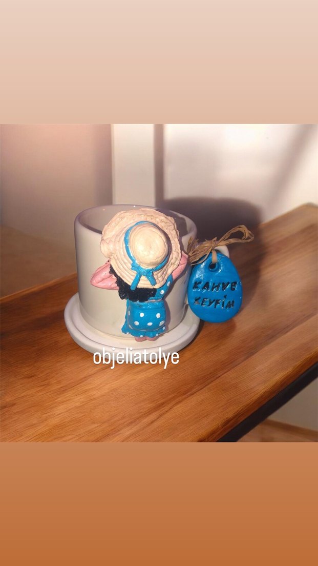 İstenilen renk model yapılır kupa porselendir settir su bazlı verniklidir yıkanır isim yazılır kısa sözler yazılır renk ve model için sayfamı inceleyiniz lütfen Pastel mavi seramik kahve fincanı, şapkalı kız figürü ve 'KAHVE KEYFIM' etiketiyle kahve keyfinize sevimli bir dokunuş katıyor. ☕