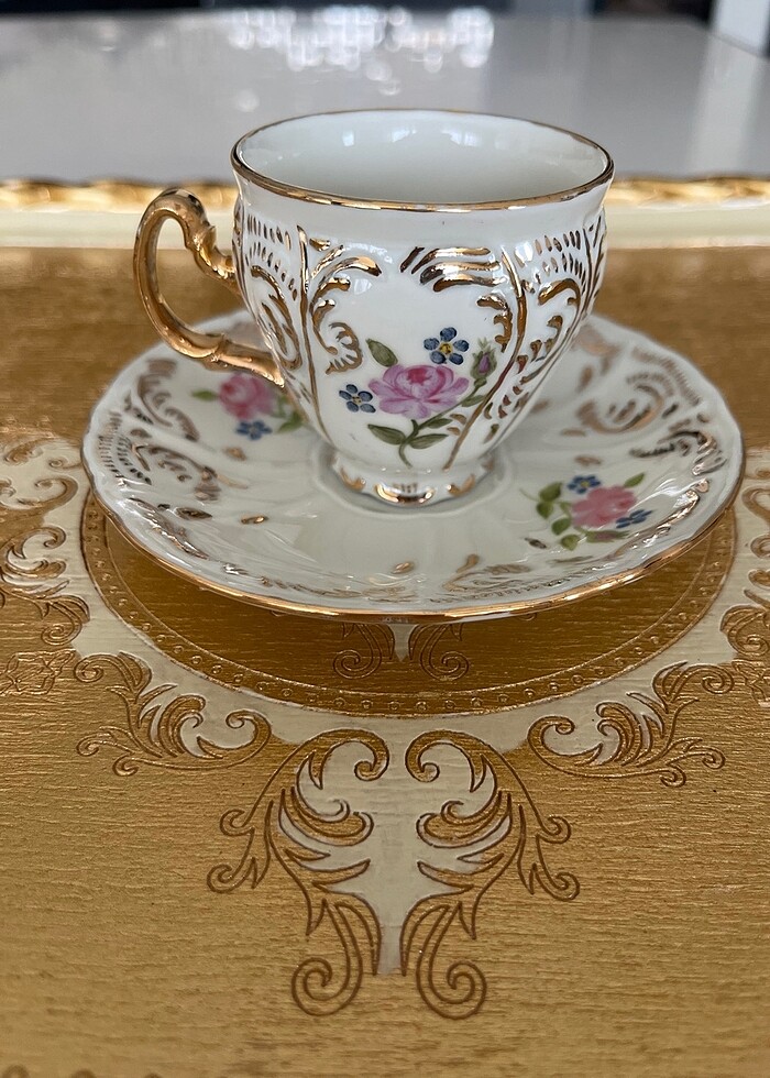 El boyaması kahve fincanı takımı. Hiç kullanılmadı. Bernardotte Çek porseleni. 6 parça