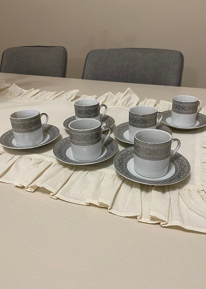 6 kişilik porselen kahve fincanı hiç bir hasarı yoktur. Hiç kullanılmadı.