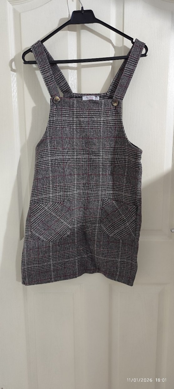 kahve Gri Ekose Düğmeli Salopet