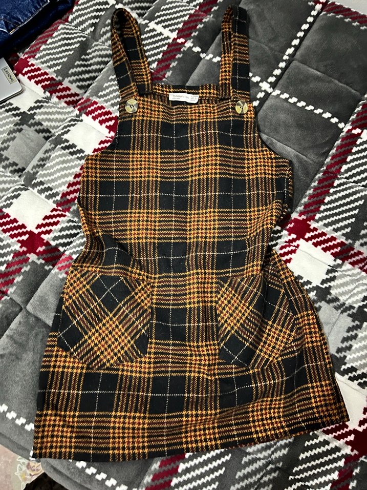 Sentetik kumaştan, kareli desenli, tokalı askılı, bol kesim sokak modası tarzında.