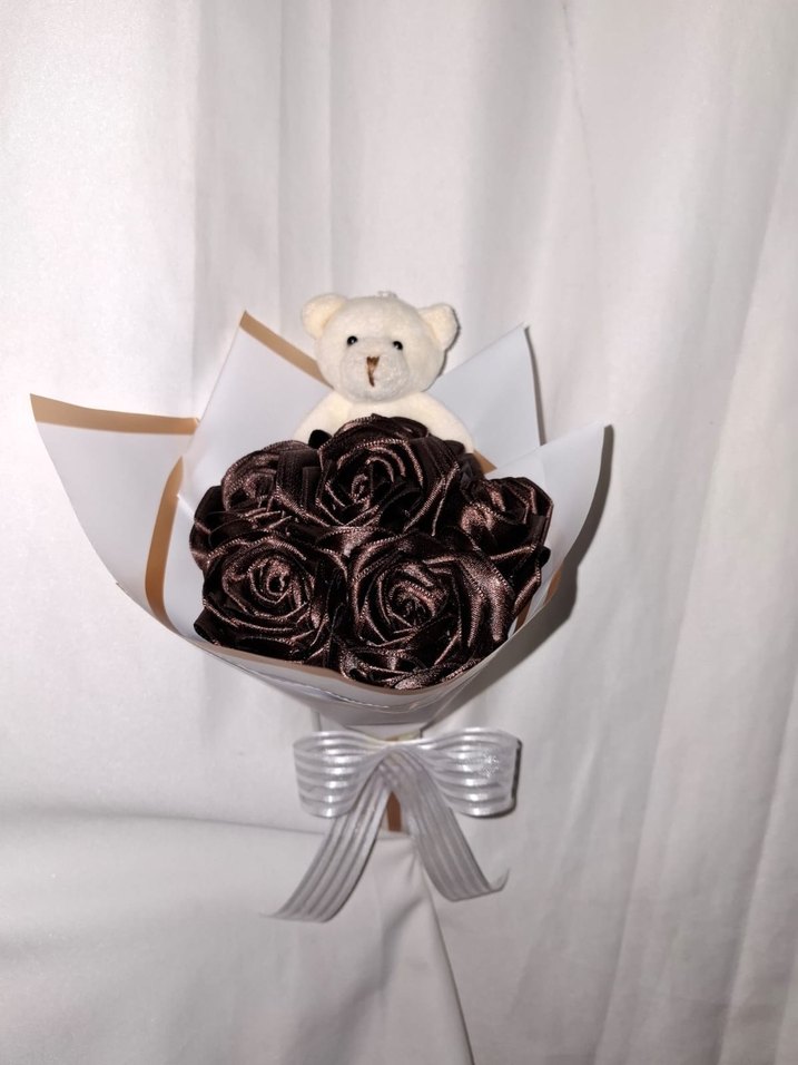 Kahve Kurdele Çiçek Buketi(Ayıcıklı)