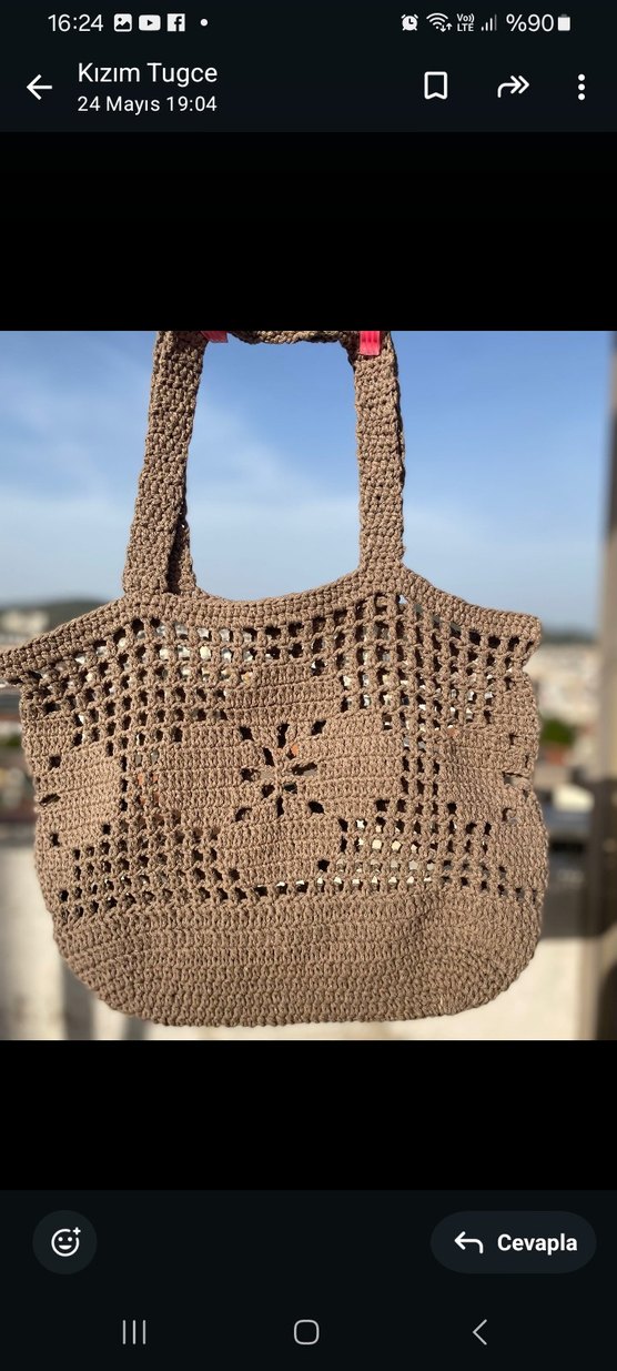kahve Örgü Kadın Çanta en 40 boy 30cm