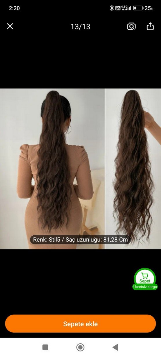 Kahve Parlak Sentetik Saç Tokası 81 cm