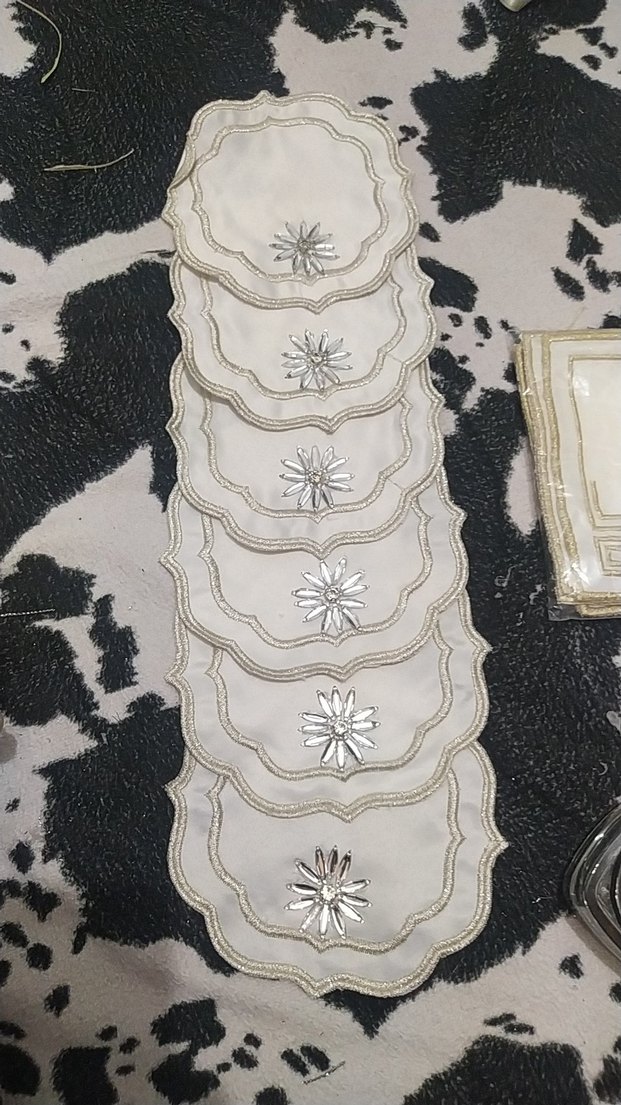Nakışlı gri çiçek desenlerine sahip beyaz renkli kahve sunum peçetesi rengi gri dir