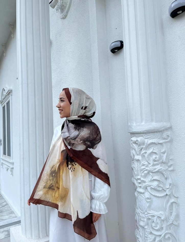 Kahve rengi cicekli Şal
