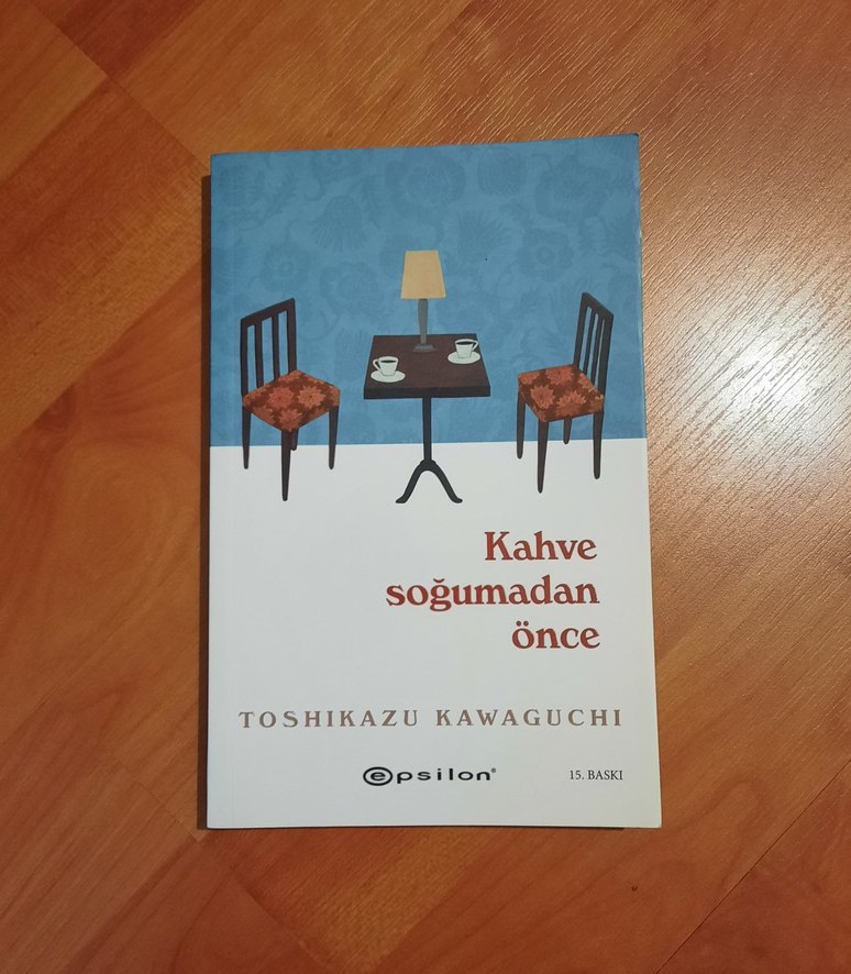 Toshikazu Kawaguchi'nin "Kahve Soğumadan Önce" adlı romanı, Epsilon yayınevi 15. baskı.