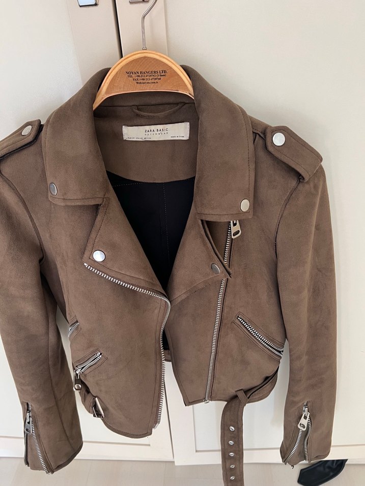 kahve süet biker ceket,