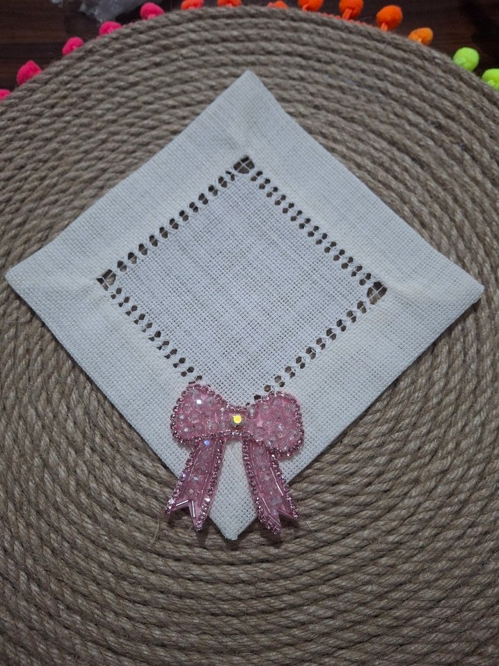 Pembe fiyonk İşlemeli sunum peçetesi