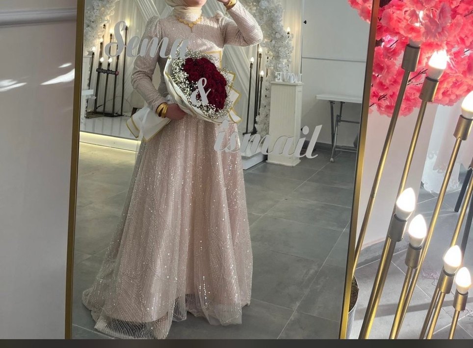 1 hafta önce nişanımda bir kez kullandığım elbisem 40 bedendir arkadan ip özelliğiyle 42-44 bedene kadar uyumludur taşlı hafif alttan kabarık çok beğeni alan abiye modelidir fazla parça özelliğiyle türban tasarımına uygundur isteyene özelden resim atılır