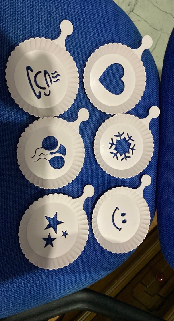 Altı farklı kesim deseni olan Her tabakta kalp, yıldız ve gülümseme gibi şekiller bulunur