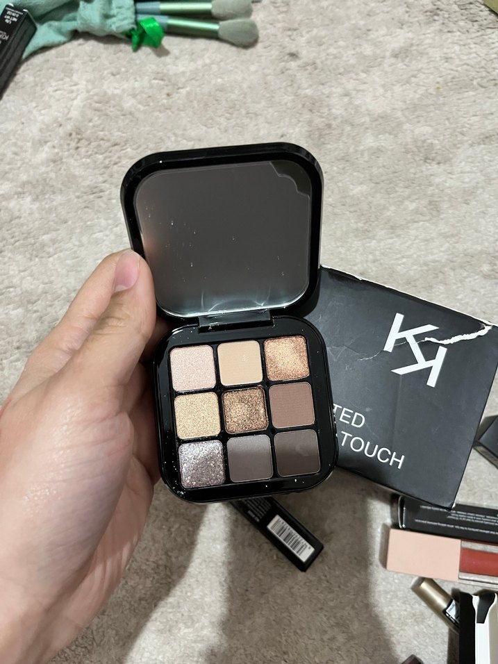 Bejden koyu kahve tonlarına kadar dokuz far rengi içeren, mat ve ışıltılı dokulara sahip göz farı paleti. İçinde ayna bulunur. 'ED TOUCH' yazılıdır.