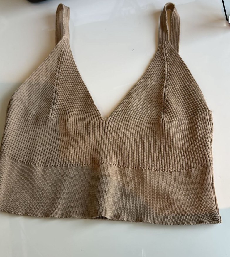 Bej renkte, rahat ve modern tasarımlı, askılı crop her bedene olur çünkü bedensiz.