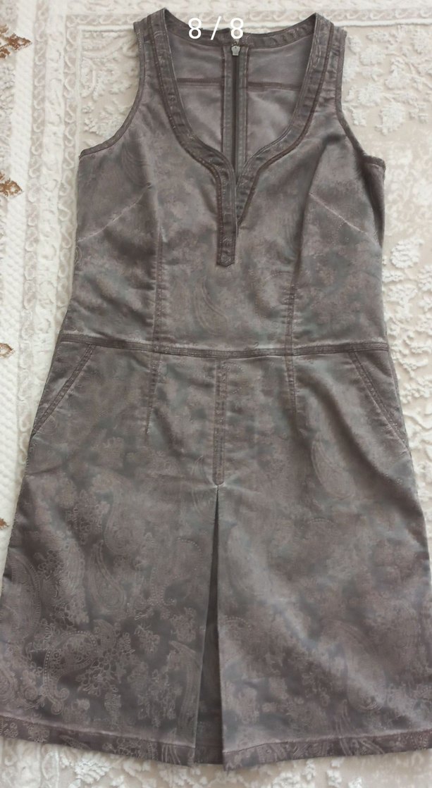 kahve V Yaka kendiden desenli elbise