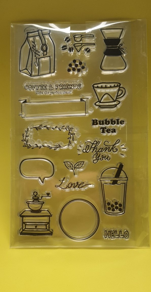 Kahve ve Baloncuklu Çay Temalı Şeffaf Damga Seti