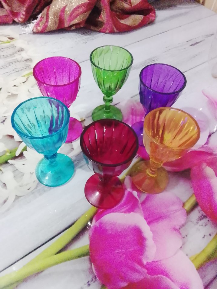 Altı farklı canlı renkte, bardak sayılı kullanildi bazialrinda az soyulma başkada tertemiz sağlamdır
